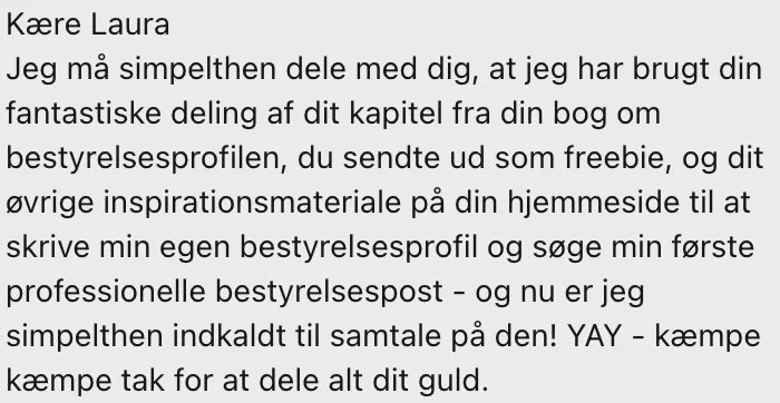 Men fortvivl ikke, hvis du ikke har poster eller CxO-titler at byde ind med. Det havde jeg heller ikke, og det lykkedes alligevel, fordi jeg havde de kompetencer, de konkrete virksomheder stod og manglede i bestyrelsen.